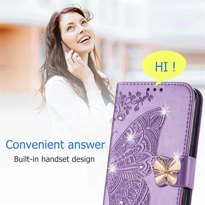 pixel 8aケース 手帳型 グーグルピクセル 8A ケース 財布型 カード収納 かわいい キラキラ 胡蝶 フラワー柄 シンプル おしゃれピクセル 8A 手帳型ケース 良質 革 レザー 上絵 マグネット式 pixel 8a カード入れ 携帯ケース 横置きスタンド機能付き スマートフォンケース 耐衝撃 ストラップホール付 画面保護 ソフト擦り傷防止スマホカバー (パープル)