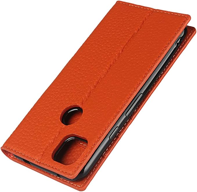 Eastwave for Google Pixel 4A ケース for pixel4a google 4a 手帳型 ケース 財布型 カバー 手帳式 本革 柔らかい 本皮 高質 スプラットホール付き スプラット同梱 内蔵マグネットカード収納 横置きスタンド機能 - オレンジ