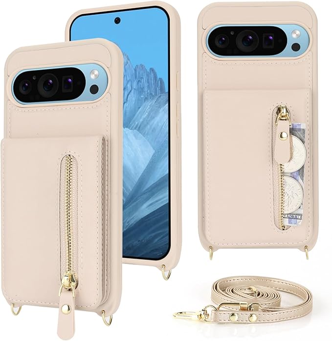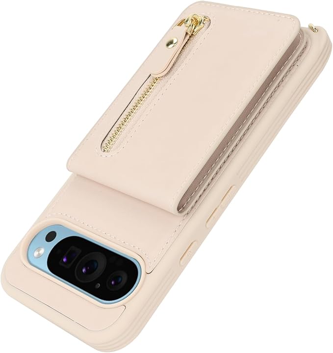 Google Pixel 9 Pro XL ケース ショルダー ストラップ付き ショルダーケース 背面フリップ 上下開 手帳型 Google用 pixel9proXL docomo au SIMフリー softbank 全対応 グーグル ピクセル9プロXL カバー case 適用 iCoverCase カード収納 縦置き スタンド 肩がけ 首掛け 斜め掛け 携帯カバー ベージュ