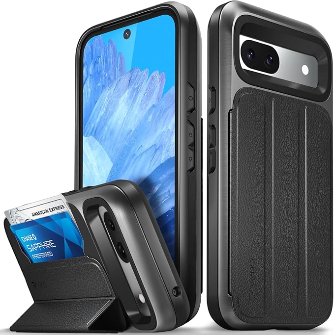 VENA vCommute ウォレットケース Google Pixel 8a (2024) 対応 (軍用グレード落下保護) フリップレザーカバー カードスロットホルダー キックスタンド付き - スペースグレー