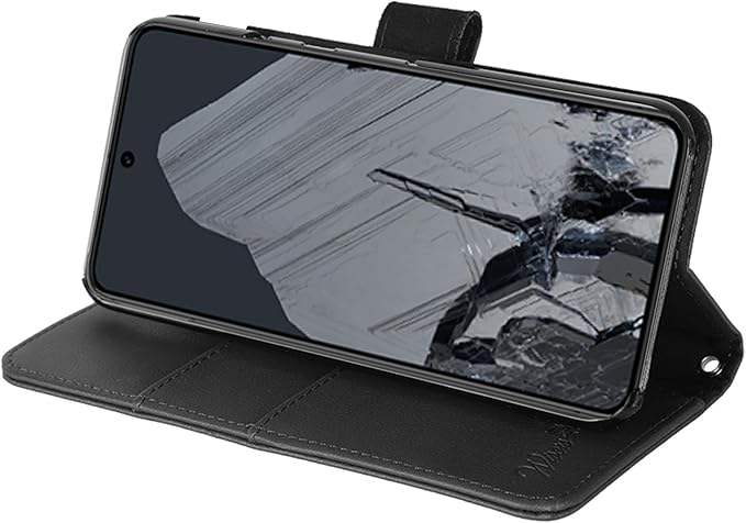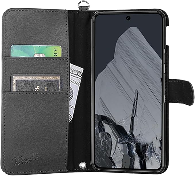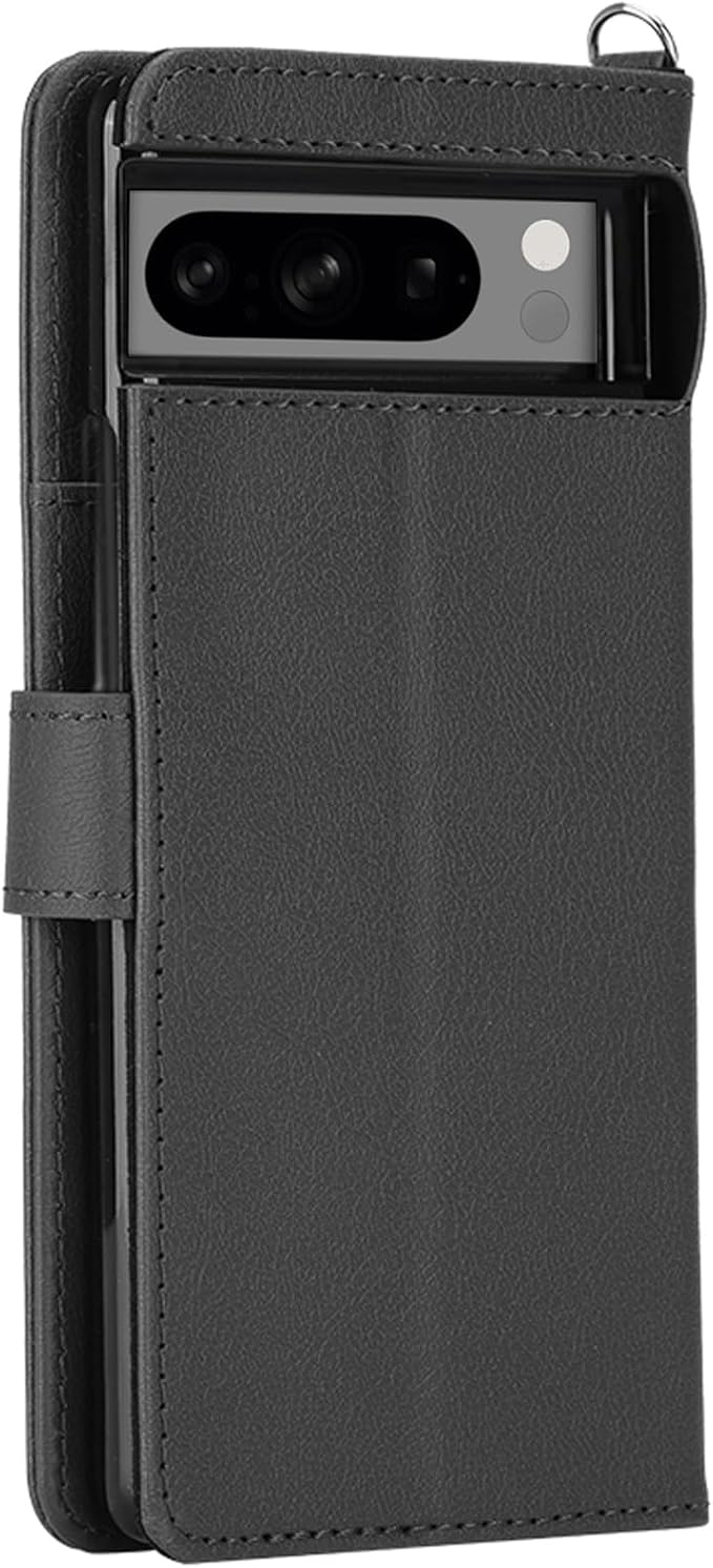 wisers Google Pixel 8 Pro 対応 手帳型 スマホケース (ブラック) ストラップ 2種付き (ハンドストラップ/ネックストラップ) 2023 年 新型