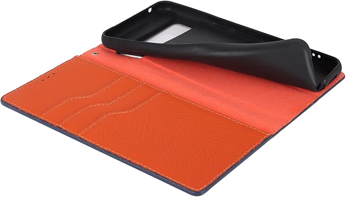 【素材】: シンプルさと高級感を兼ね備えたデザイン, 外殻は牛革製品 本革レザーを採用しており, 内側はスマートフォンにフィットし、隙間なくそれを保護するソフトTPUシリコーン材料で作られています。