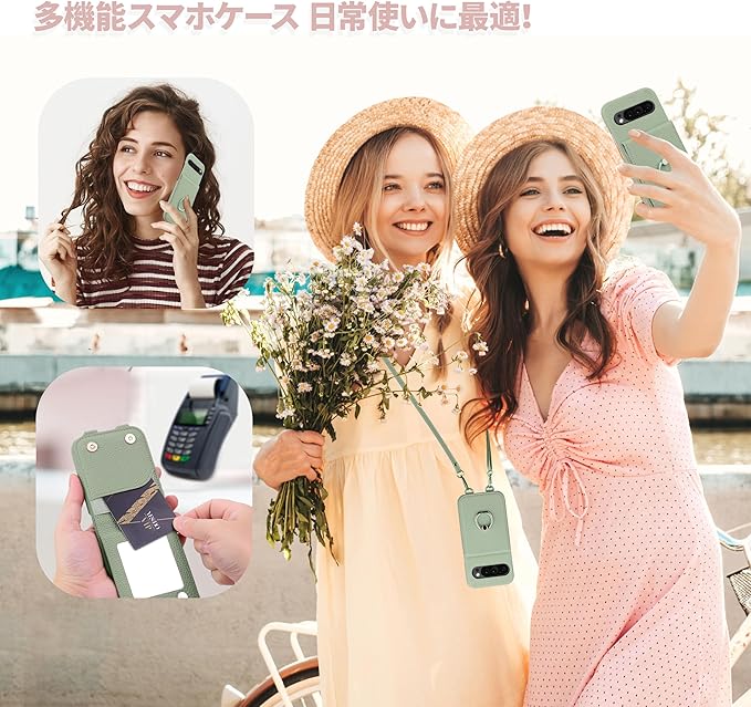 パッケージ内容:1 X Google Pixel 9/9 Pro スマホケース(6.3インチ) 多機能デザイン:スタンド機能背面には、回転させてスタンドとして使用できるメタルリングが装備されており、毎日のテレビ番組の視聴やビデオ通話に最適だ。カード収納カードスロットが2つあり、デイリーカードやチケットの収納に便利。メイクアップミラー付き女性が身だしなみをチェックしたり、化粧直しをしたりするのに便利な小さな鏡付き。外出時に重宝するだろう!調節可能なショルダーストラップカラーコーディネートされたショルダーストラップコードは、両手を自由に使えるので、荷物を持ち上げたり、子供を連れ出したりする際に、携帯電話を紛失する心配がありません。長さは必要に応じて自由に調節でき、ショッピングや旅行、ウォーキングに適しています。