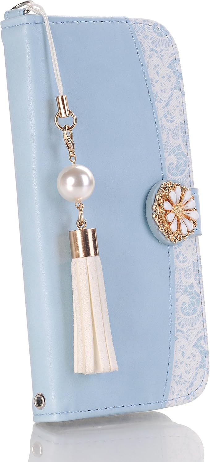 case for Google Pixel 3aカバー グーグル ピクセル3aケース 手帳型 かわいい花柄 キラキラ おしゃれなストラップ付き 財布型 カード収納 マグネット式 保護ケース 軽量 スマホケース スマートフォンケース 少女 レディース用 全面保護 耐衝撃 (Google Pixel 3a, A3-青)