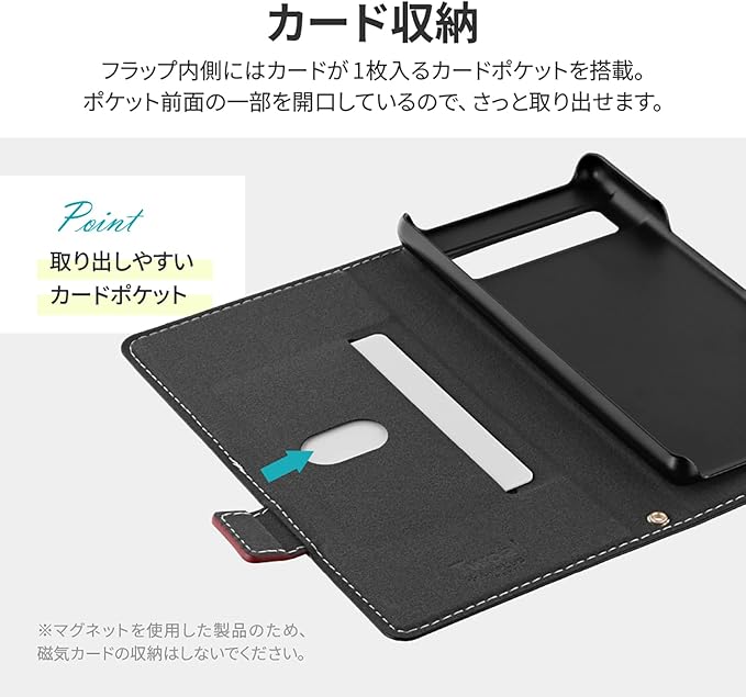 ピタッと固定できるマグネット仕様/すぐ取り出せて嵩張らないカード収納ポケット(1枚)