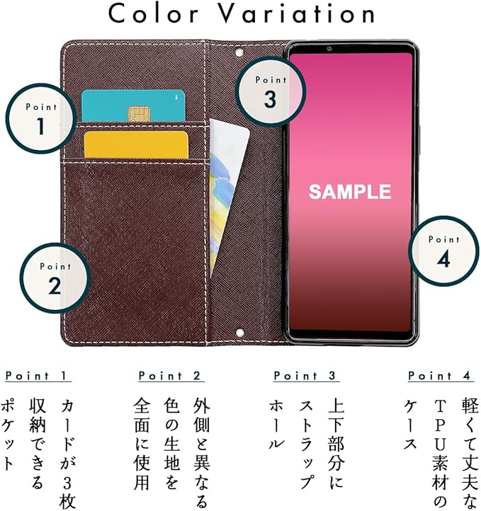 手帳部分とケース部分は接着していますが強くめくると剥がれる場合があります。