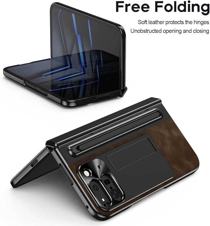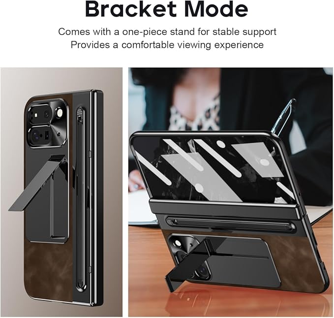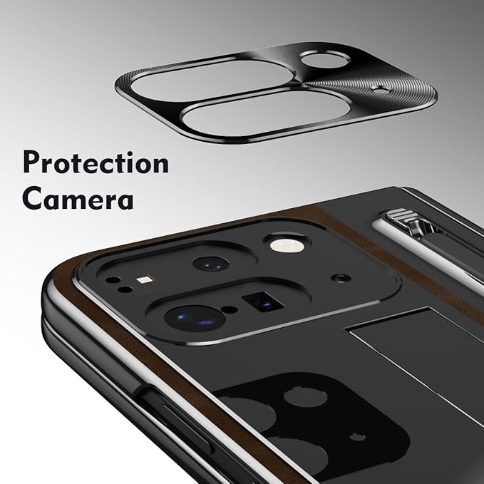 ケース GG Pxl 9 Pro Fold用 手帳型 つや消し皮革 隠しブラケット機能 ヒンジ保護 ペンみぞ メタルレンズカバー 薄型 軽量 古典なレザー 折り畳み 人気、キラキラ おしゃれ かわいい 二層構造 取り外し ポケット 耐衝撃 QI充電 ワイヤレス 財布型 面白い - コーヒー色