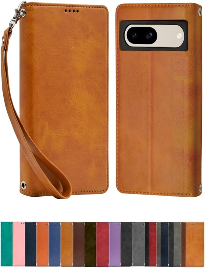 シズカウィル Google Pixel 8a ケース カバー 手帳型 本革調 レザーケース ライトブラウン 1個入り