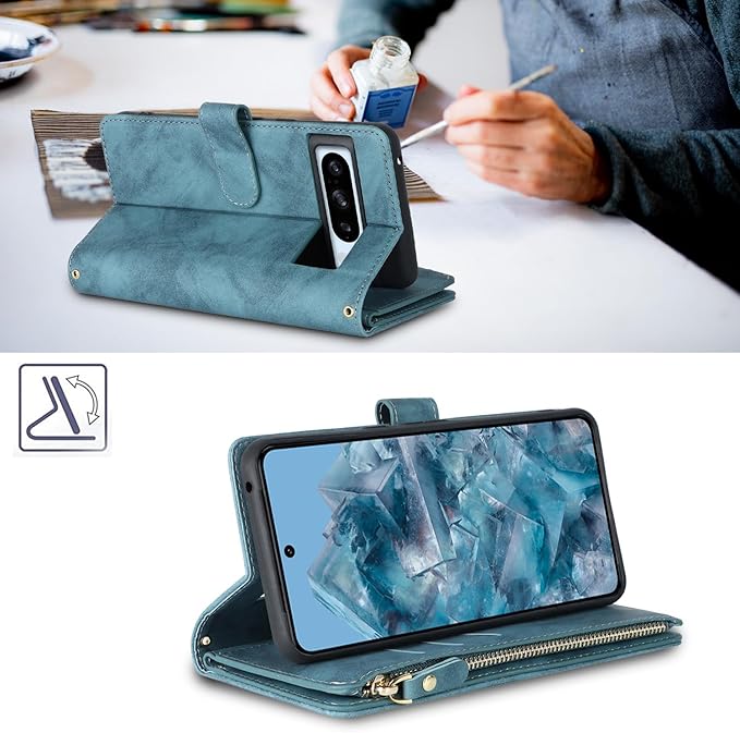 Google pixel 8 pro ケース 手帳型 ショルダー ストラップ pixel8 pro SIMフリー softbank au 対応 ピクセル 8pro 8プロ グーグル ピクセル8pro pixel8pro 財布 適用 CASE iCoverCase マグネット 斜め掛け カードケース ストラップ付き カバー ショルダーケース スマホケース 携帯カバー レトロ ブルー ターコイズ
