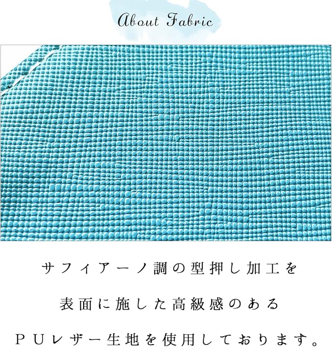 ケース全面には傷が付きにくく、デイリー使いのしやすいサフィアーノ 調 型押し PUレザーを使用。スナップボタン・ファスナーにはゴールドを、ファスナーのテープ部分にはベージュカラー使用し、アクセサリー感覚でもお持ちいただけるような、存在感・こなれ感のある手帳型ケースに仕上げました。