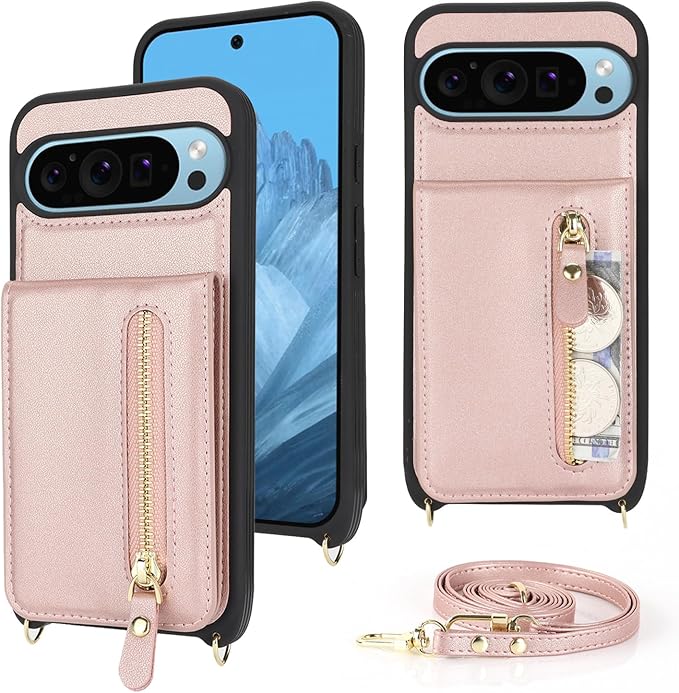 Google Pixel 9 Pro XL ケース ショルダー ストラップ付き ショルダーケース 背面フリップ 上下開 手帳型 Google用 pixel9proXL docomo au SIMフリー softbank 全対応 グーグル ピクセル9プロXL カバー case 適用 iCoverCase カード収納 縦置き スタンド 肩がけ 首掛け 斜め掛け 携帯カバー ピンク