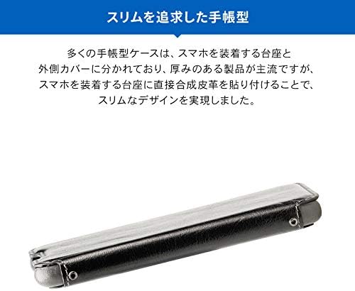 【スリムを追求した手帳型】… 多くの手帳型ケースは、スマホを装着する台座と外側カバーに分かれており、厚みのある製品が主流ですが、スマホを装着する台座に直接合成皮革を貼り付けることで、スリムなデザインを実現しました。