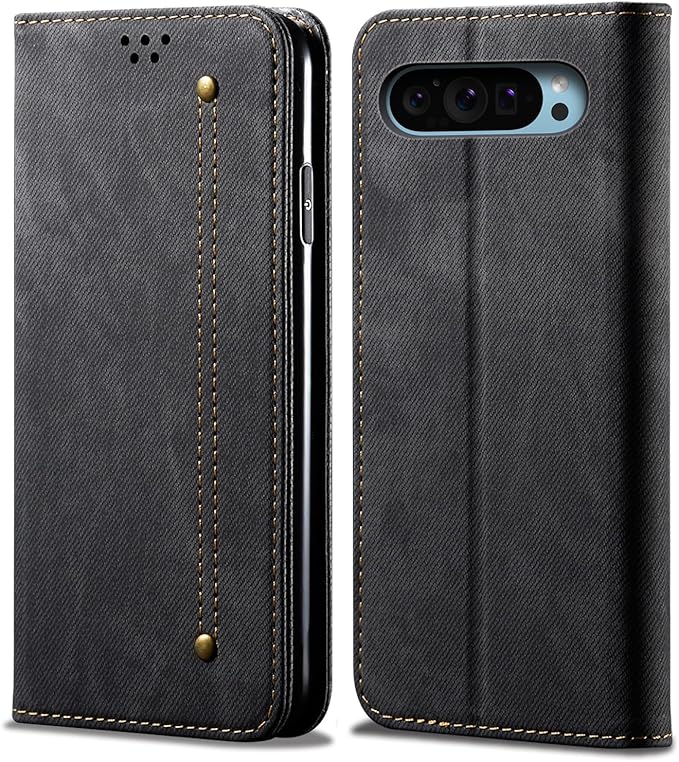 Pixel 9 ケース 手帳型 通用Pixel 9 Pro 財布型 レザー 耐衝撃 レザー 保護 カバー ぴくせる デニムケース カード収納あり 使う便利性 カバー カード収納 スタンド機能 ぐーぐるぴくせる ピクセル9/9 Pro 横置きスタンド機能 二つ折り 手作り 大人っぽい 落ち着くデザイン (ブラック, PIxel 9/9 Pro)