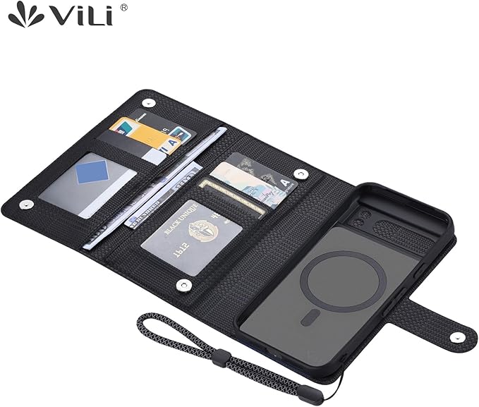 ViLi-GHA Google Pixel 8 対応 2in1 紙幣 カード収納 取外し可能 マグネット 着脱式 分離式 ストラップ付き 2WAY 手帳型ケース グレンチェック調 黒 CPIX8-VL-GHA-BK