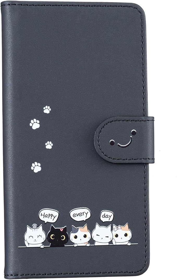case for Google pixel 9/ 9 Pro 通用カバー グーグル ピクセル9/ 9 Pro ケース手帳型かわいい猫 笑顔【TOTOJIA】 財布型 マグネット付き 横置きスタンド機能付き カード収納 全面保護 (A2-ブラック 黒, に適用するGoogle pixel 9/ 9 Pro通用)