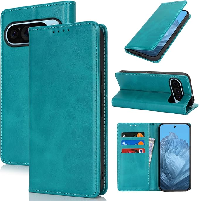 Pelanty Pixel 9 Pro XL ケース Google pixel9 Pro XL 手帳型ケース グーグル ピクセル9pro XL 携帯カバー レトロ 合成皮革 + TPUケース 内蔵マグネット pixel9 Pro XL 財布型カバー カードポケット 収納ポケット 横置きスタンド機能 スマホケース 汗や指紋防止 軽量 薄型 耐衝撃 耐摩擦 着脱しやすい スカイブルー