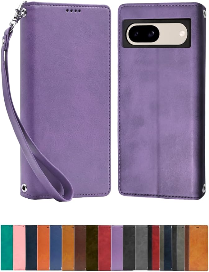 シズカウィル Google Pixel 8a ケース カバー 手帳型 本革調 レザーケース パープル 1個入り