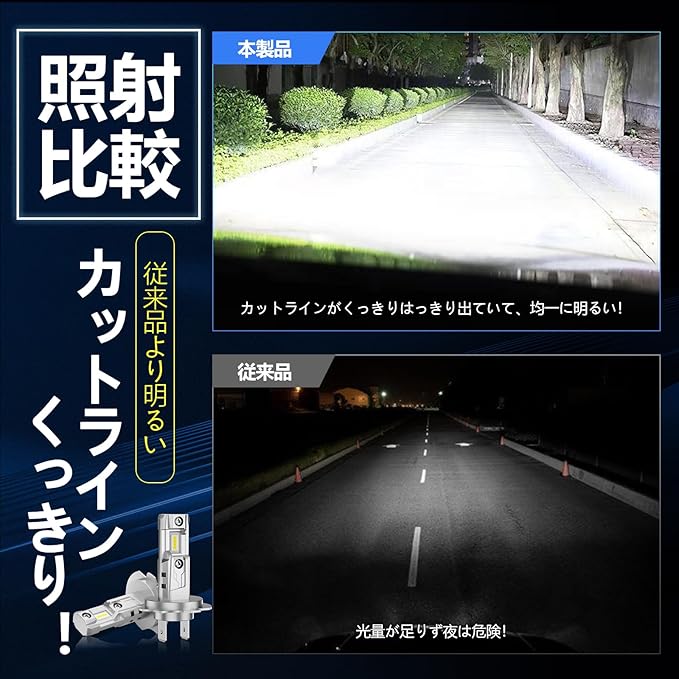 【驚きほどの爆光型h7 led ヘッドライト】従来の一体型ファンレスLEDヘッドライトは放熱が難しくて、最初は明るくても、長時間点灯したら段々暗くなります。こちらのh7ledヘッドライトは従来品と異なり、熱伝導性に優れた銅基盤を採用しておりますので、長時間点灯しても非常に明るい光度が維持できます!ハイパワーLEDチップを採用していますが、放熱対策をしっかり行っていますので、高輝度かつ長寿命を実現しました!14,000lmの明るさで、愛車の高級感を引き立たせます!