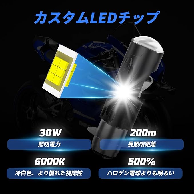 KaiDengZhe P15D LEDヘッドライトバルブ、H6M LEDバイク 車検対応 PH7 ミニプロジェクターレンズを組み合わせ、散乱光問題を解決、超高輝度30W 6000K 5000LMのプラグアンドプレイH6M ヘッドライト改造キット、無極性 スクーター・オートバイに適用 1個入り