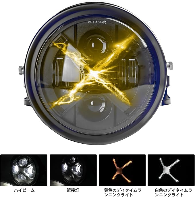 【パーソナライズさ】バイク ヘッドライト オールブラックの外装デザインが、個性的なブラック ウォリアー スタイルを作り出します。 X スタイルの白色/黄色昼间行走モのデイタイム ランニング ライトにより、運転中の視認性が向上します。