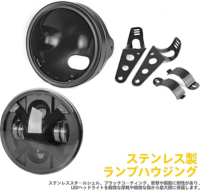 7インチ LED ヘッドライトシェル とブラケットが付属 ハイビーム Hi/ロービームLo切り替え 黒い騎士X-スタイルDRL機能付き12V24V防水6000K高輝度車検対応バイクヘッドライト汎用