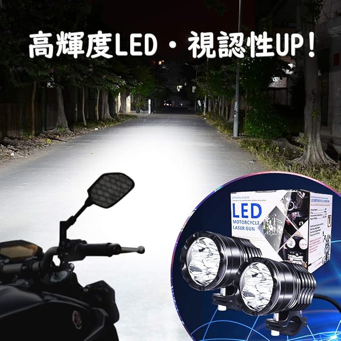 高輝度LED:高品質な4連LEDを使用しており、普通のライトより遠くまで明るく照らすことができます。夜間や悪い天気で視認性を向上させます!