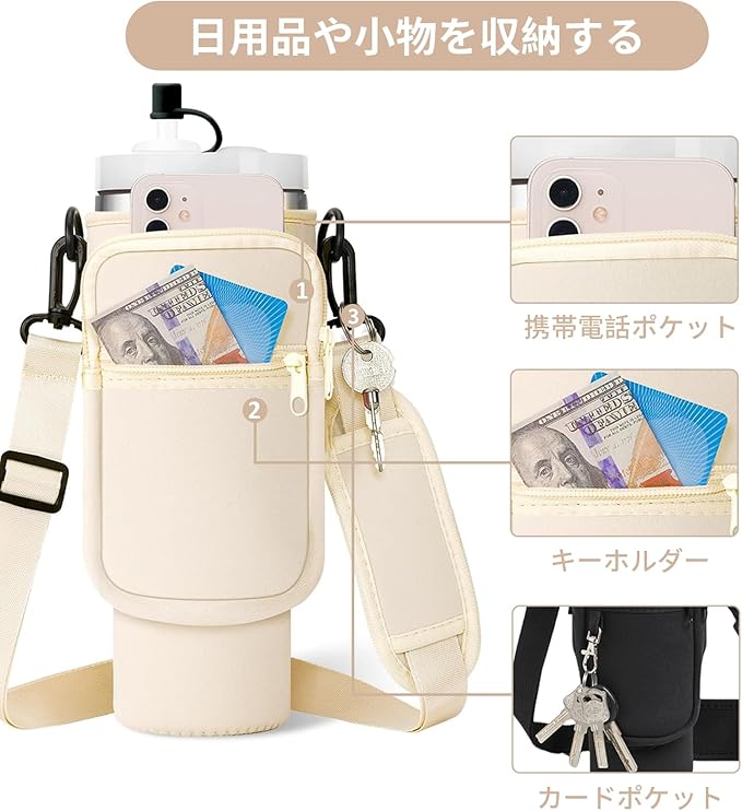[GreenGee] 水筒カバー スタンレー用カップホルダー 【断熱・保冷・調節可能】 水筒ホルダー キャリーバッグ付き 斜めかけ 調節可能なショルダーストラップ付き 対応スポーツボトル 魔法瓶用 正規品 水筒キャリングケース アウトドア ハイキング ウォーキング 旅行用