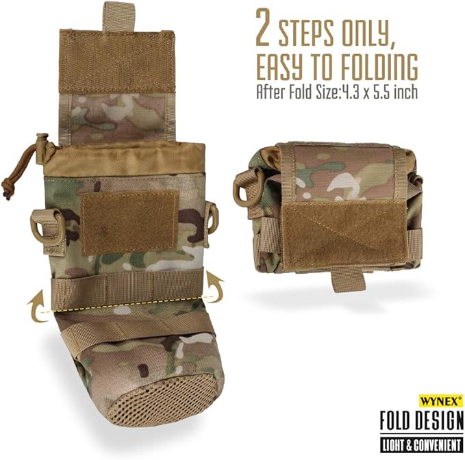 WYNEX Molle折りたたみ水筒ポーチタクティカルMolle折りたたみ水筒ポーチホルダーケトル水和キャリヤーメッシュ底断熱巾着付きの水筒バッグ