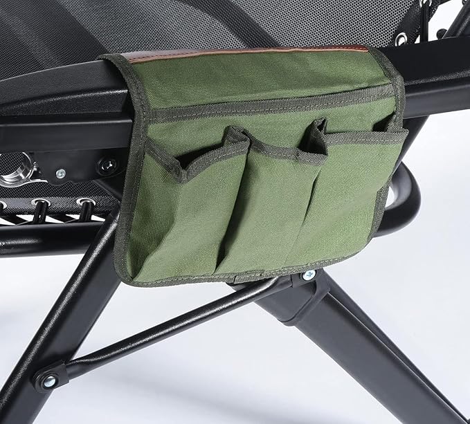 チェアサイドにかける収納バッグになっております。3つの収納があり、ドリンクやアウトドアグッズを入れるのに最適です。