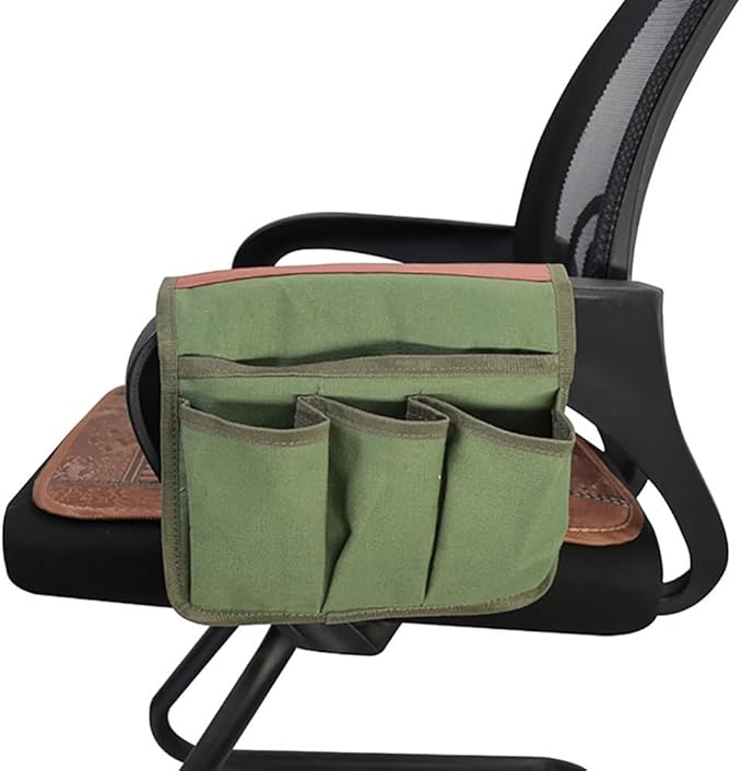 取り付けは簡単♪スナップボタンでパチッっと取り付けるだけ!椅子の肘置きに簡単に取り付け完了!小物類を収納できてあると便利なグッズです。