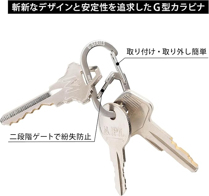 上部には取り出しやすくしたい物を、下部には紛失を防ぎたい物をといったような2通りに分けて引っ掛ける事ができます。#1は2個入りです。