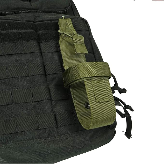 デザイン:背面にモールストラップ付きで、モール対応したバックパック、ベルト、ベストに取り付ける可能で、持ち運びには手軽です。マジックテープ式のベルトがサイズに合わせて調整可能です、いろんな直径のペットボトルや水筒が対応できます。上端のゴムバンドは自由に結束でき、安定感があります。