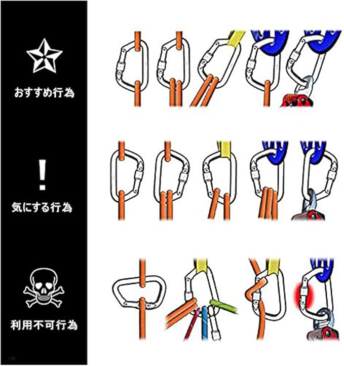 最大安全強度: 約80 kg(縦軸方向)強度範囲以内でご使用ください。このカラビナは登山用ではございません。(クライミング&登山専用釦として利用できません, 予めご承知ください), ヒント: 重いものをぶら下げた場合は、取扱説明書をよく参照してください。実際に受けた重力は、受力方向の違いによって違いますので, ご注意ください