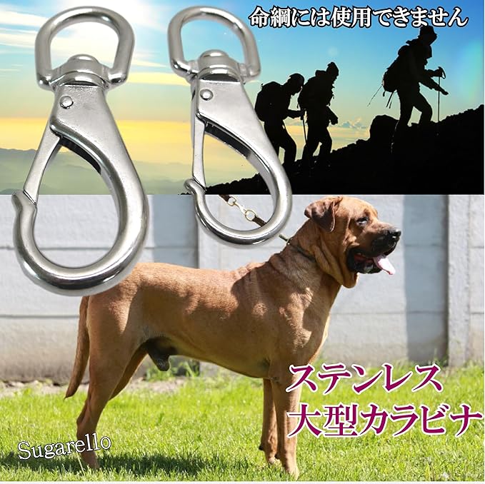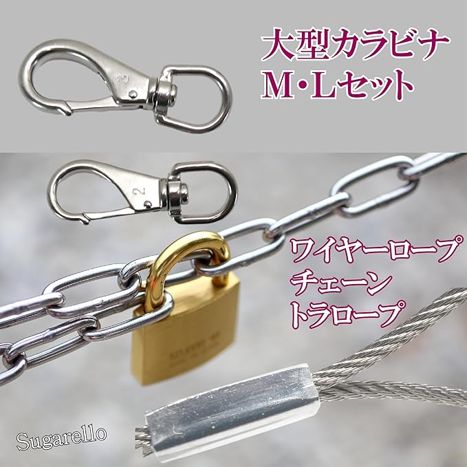 Sugarello カラビナ スナップフック 大型 万能フック ステンレス 耐久性 SUS304 頑丈 多機能 スプリングフック アウトドア キャンプ 登山 M・L、2種セット