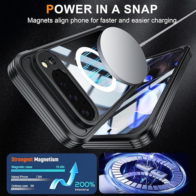 Lafunda Google Pixel 10 Pro XL 用 ケース 360度全面保護 MagSafe対応 透明 スマホカバー 角保護強化 ガラスフィルム付き アウトドア 耐衝撃 黄ばみなし傷つけ防止 落下防止 ワイヤレス充電対応 Google Pixel 10 Pro XL 用 マグネットスマホケース ブラック