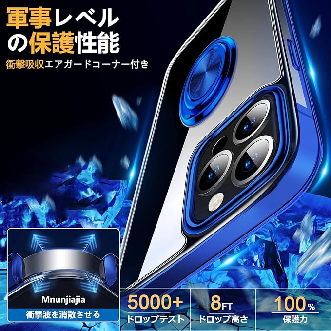 Mnunjiajia 対応 Google Pixel 10 Pro用 ケース Google Pixel 10 用 ケース リング クリア 透明 TPU メッキ 加工 耐衝撃 車載ホルダー対応 スタンド機能 防塵 薄型 軽量 落下防止 一体型 変形防止 全面保護カバー ピクセル 10/10 プロ カバー 青 MJJ-1052-12-03