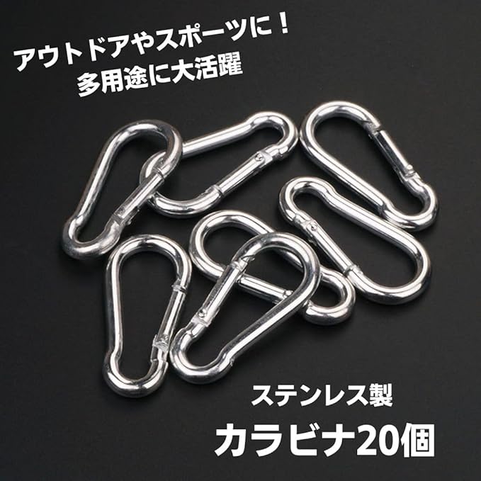 【手軽に使える】操作が簡単なワンタッチ取り付けで、日常生活やアウトドア活動において幅広く利用できる便利なツールです。この製品は、キー、ケトル、バックパック、ロープなど様々なアイテムを手軽に接続するのに最適です。例えば、キャンプ場で重いバックパックをしっかりと固定したり、釣り用具をまとめて持ち運ぶのが非常に便利です。また、遮光ネットや腰道具、ブランコの取り付けにも適しています。 【高品質ステンレス製】素材には、耐久性と防錆性に優れたSUS304ステンレス鋼を採用しています。この材質は優れた耐食性を持ち、雨風にさらされても錆びることなく安心して使用できます。これにより、長期間にわたって安心してご利用いただけます。特に、アウトドア活動や旅行での使用において、厳しい環境下でも信頼性が高いです。 【様々な用途で】日常使いにおいては、バックパックのストラップにキーやケトルを簡単に吊るせるため、移動中にも手軽にアクセスできます。さらに、犬や猫のリードフックとして使用することも可能で、ペットと一緒に公園で遊ぶ時にも大変便利です。このツールは、家庭やオフィスでのキーチェーンとして日常的に利用するのにも適しています。注意点として、こちらの製品はクライミングや登山専用のカラビナとしての利用は推奨されておりません。この用途には現行の規格に適合した専用の装備をお使いいただくようお願いいたします。 【商品詳細】カラビナ20個セット サイズ5cm 耐荷重200kg 【返品について】購入から30日間返品対応させていただきます。その際はお手数ですがAmazonカスタマーサービスまでご連絡ください。※お使いのモニター、撮影環境により画像と実際の商品との色味が異なる場合がございます。