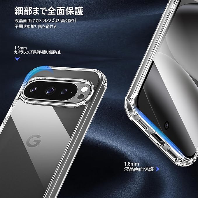【水晶のような透明感と超高耐衝撃性】透き通って高い透明度を誇り、背面がpixel10 pro xlのカラーや質感をそのまま映え、高級感が溢れて、すごくかっこよくてこのクリア感にいつまでも見惚れてしまいます。米国国防総省の耐衝撃試験「MIL-STD-810G」に認証済み、耐衝撃性能は20倍アップ。ピクセル10Pro XLを全方向からしっかりと保護できす。