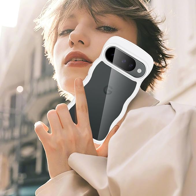 クリア Google Pixel 10/Pixel 10 Pro ケース かわいい 波状フレーム うねうね 耐衝撃 グーグル ピクセル10/10Pro スマホケース 滑り止め 人気 可愛い カバー 落下防止 ワイヤレス充電対応 (ホワイト)
