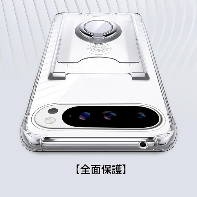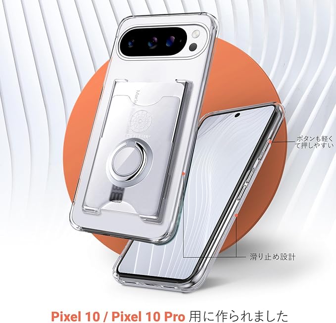 Rockaway 互換性 Google Pixel 10/10 Pro用 ケース カード収納 背面ポケット リング付き スタンド機能 耐衝撃 透明 TPU スマホケース- クリア
