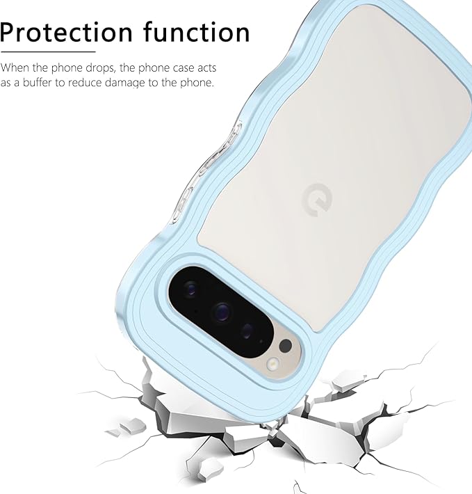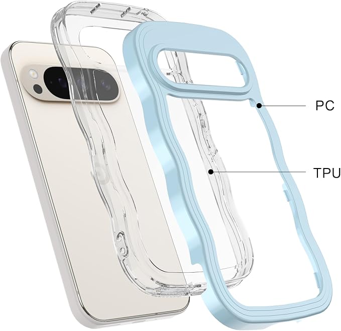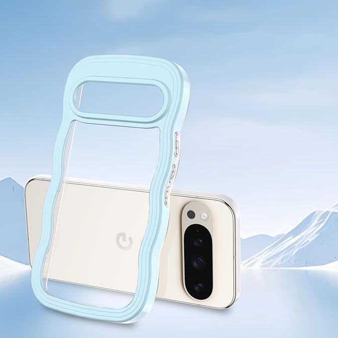 Google Pixel 10/10 Pro/9/9 Pro ケース クリア ウェーブ ピクセル 10/10 Pro/9/9 Pro TPU波状フレーム うねうね グーグル ピクセル10/10 Pro/9/9 Pro 滑り止め スマホケースウェーブ デザイン 手にフィット 韓国 可愛い 女性用 女子向け 透明 ケースカバー 人気 落下防止 耐衝撃 ストラップホール付き グーグルピクセル10/10 Pro/9/9 Pro なみなみ ワイヤレス充電対応(Google Pixel 10/10 Pro/9/9 Pro-ブルー)