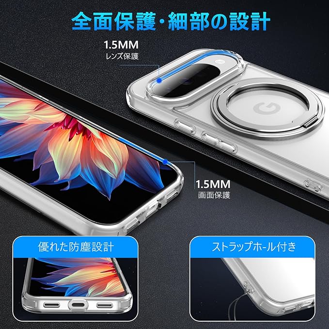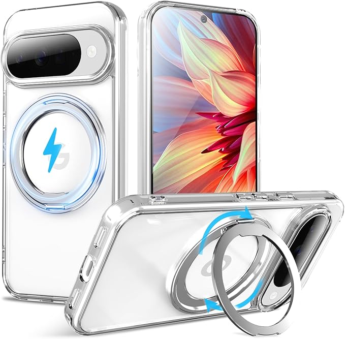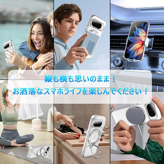 QUEASON【Google Pixel 10/10Pro 通用 MagSafe対応 ケース】360 回転スタンド ワイヤレス充電対応 pixel10 pro 用 ケース リング付き 米軍MIL規格 ピクセル10 用 スマホケース magsafe 超強磁力 落下防止 グーグルピクセル10 スマホケース 耐衝撃 半透明 防指紋(クリア)