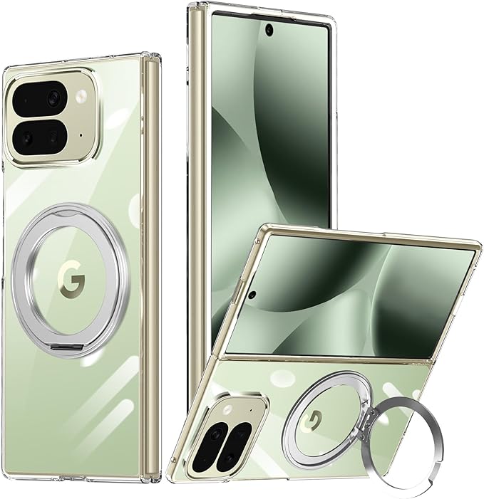 Google Pixel 10 Pro Fold ケース クリア 多機能360度回転スタンド マグネット搭載 角度調整 縦横両対応 グーグル ピクセル10 プロ フォールド カバー リング付き ケース 耐衝撃 TPU スマホケース 多機能 透明 軽量 薄型【クリア】