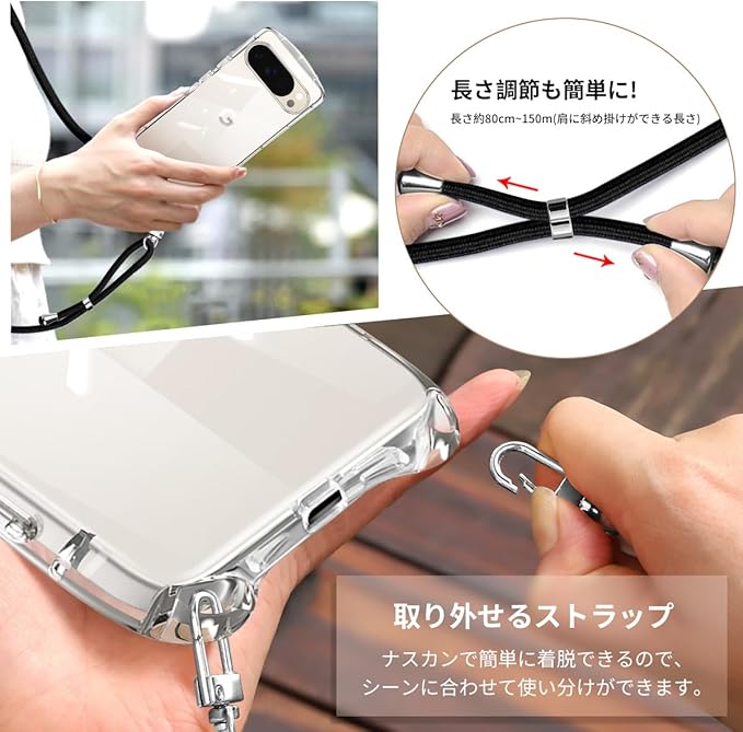 Google Pixel 10 用の ケース Pixel 10 Pro用の ケースショルダー ストラップ Pixel10 用の カバー 斜めかけ 肩掛け 韓国 ピクセル10 Pro 用 スマホケース (クリア)