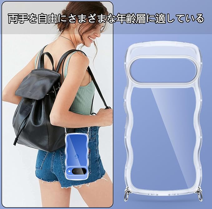 Google Pixel 10/Google Pixel 10 Pro ケース クリア ショルダー 耐衝撃 ピクセル10/10pro スマホケース カバー 薄型 軽量 首かけ 肩掛け 縄掛けケース ストラップ付き 取り外し可能 長さ調整可能 ワイヤレス充電対応 透明(クリア)
