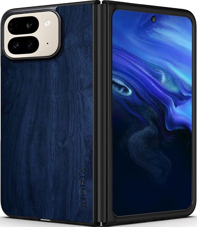 Aioria スマホケース Google Pixel 10 Pro Fold 5G 互換性ありウッドパターン スタイリッシュで丈夫な携帯電話ケース あふれる 木目柄 保護 (Dark Blue, For Pixel 10 Pro Fold)