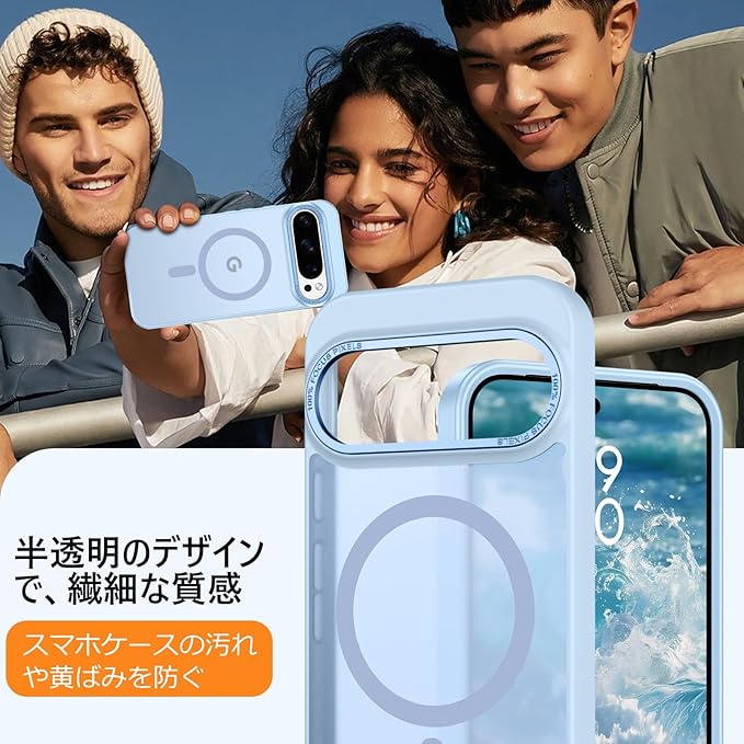 DUEDUE Google Pixel 10 Pro XL ケース マグネット搭載 ライトブルー ピクセル 10 Pro XL ケース 指紋防止 耐衝撃 一体型 薄型 TPUケース 車載ホルダー対応 ワイヤレス充電 全面保護