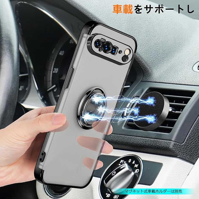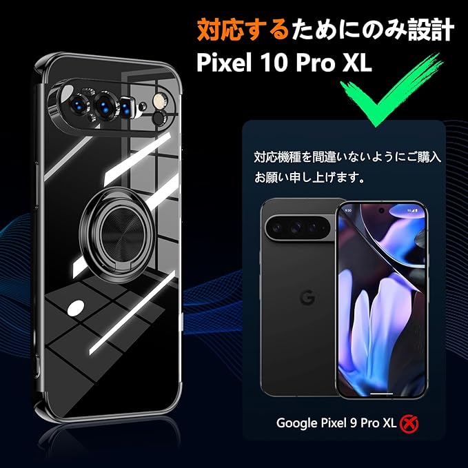 QOUNVYW 対応 Google Pixel 10 Pro XL 用 ケース リング付き クリア 耐衝撃 スタンド機能 透明 TPU 車載ホルダー対応 落下防止 防塵 薄型 軽量 一体型 変形防止 保護カバー ピクセル 10 プロ XL 用 カバー 黒 W-YXZH-89-01
