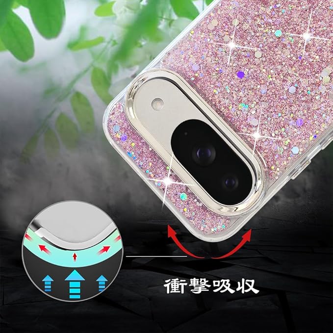 YUYIB スマホケース 対応 Google Pixel 10 Pro XLケース かわいい TPU キラキラ ブリンブリン フラッシュ おしゃれ 女性人気 美しい おもしろい キャラクター 傷防止背面 滑り止め 衝撃吸収 グルピクセル10 Pro XL 携帯電話カバー (ピンク)