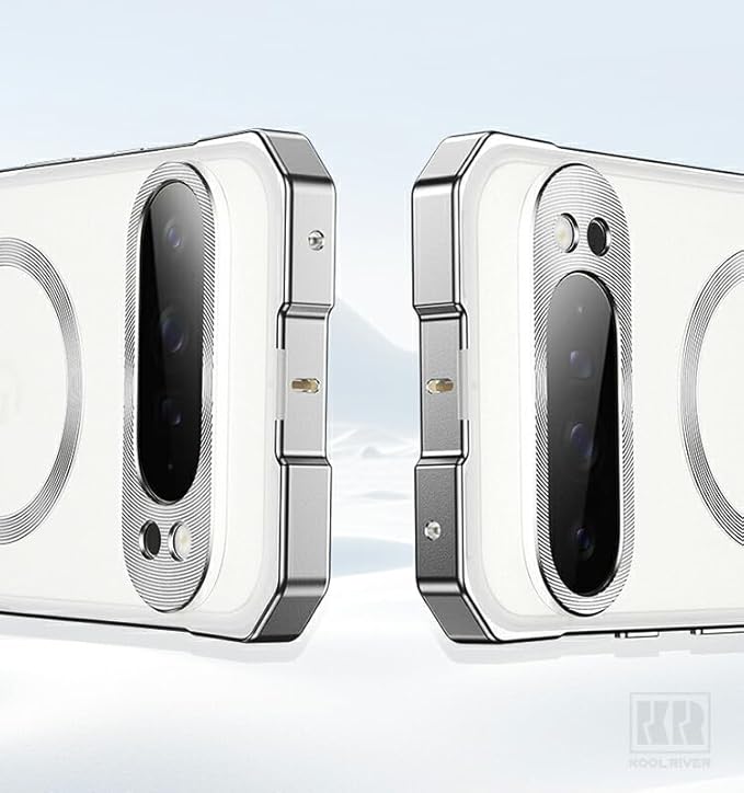 KOOLRIVER・For Pixel10 Pro バンパー ケース アルミバンパー 背面クリア アルミ マグネットで装着 背面半透明 背面パネル付き Qi充電 ワイヤレス充電 対応 かっこいい グーグル ピクセル10 プロ(シルバー)